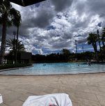 The pool is zero entry with a small slide. It has daily Disney movies to enjoy. There are servers that cater to your every need! Including bringing you cold towels and ice water at your request.